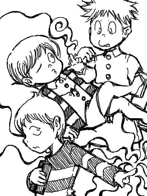 あ、あと、↓の墓場君の目が左右逆なのに今更気付きました。